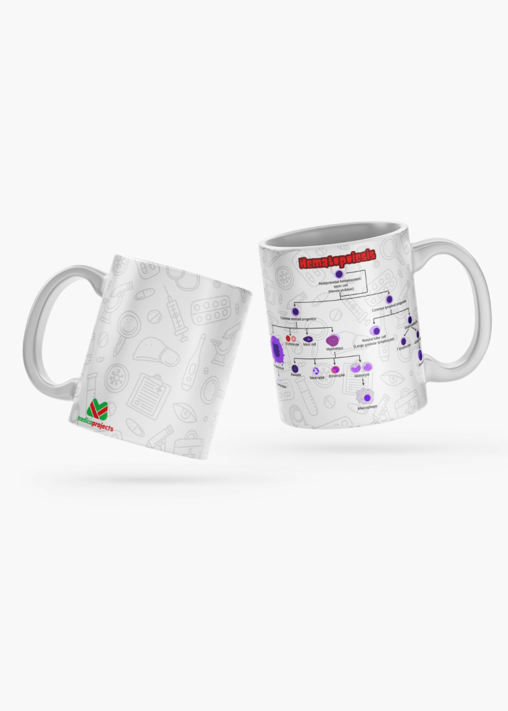 ١.كوب سيراميكي أبيض يحتوي على معلومات طبية (Hematopoiesis)